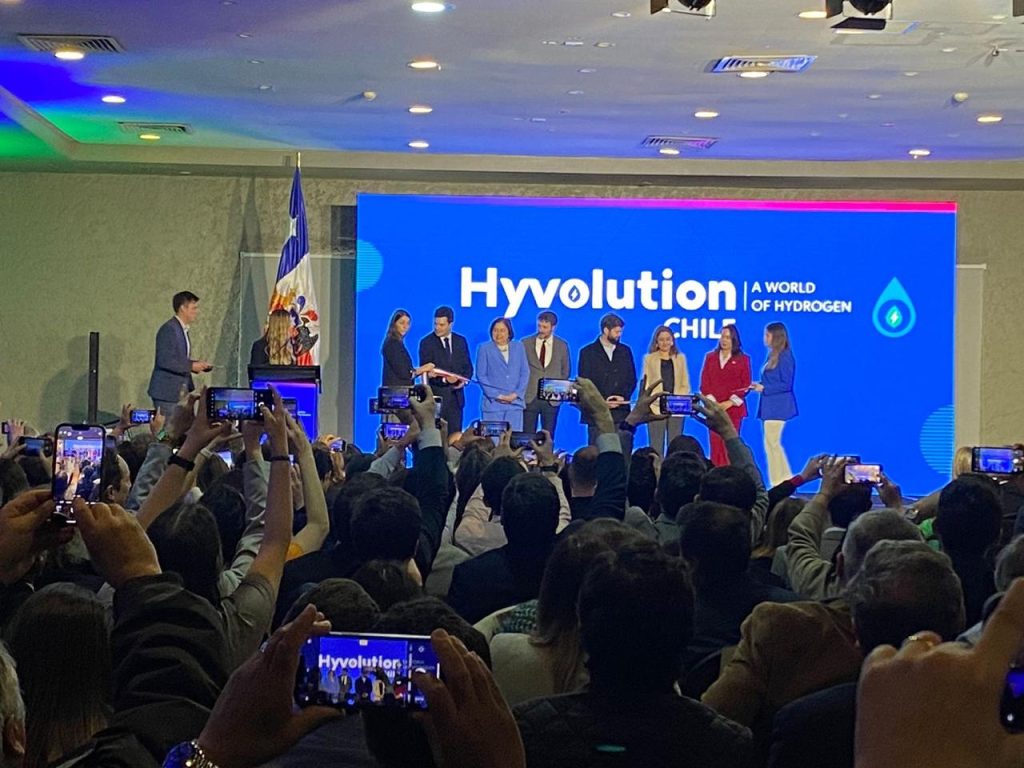 Feria Hyvolutión Chile que contó con más de 13 paneles temáticos con expertos líderes de la industria, un networking, stands con las últimas innovaciones en energía renovable, tales como una bicicleta asistida con hidrógeno verde y el primer camión impulsado por este mismo combustible en el país.