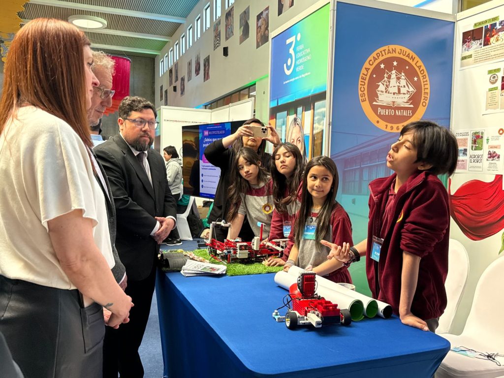 Uno de los proyectos que más llamó la atención fue el robot desarrollado por estudiantes de la Escuela Juan Ladrillero de Puerto Natales, equipado con sensores, brazos mecánicos e inteligencia artificial para la clasificación de residuos. El prototipo obtuvo recientemente el 8° lugar mundial en una competencia realizada en Panamá.