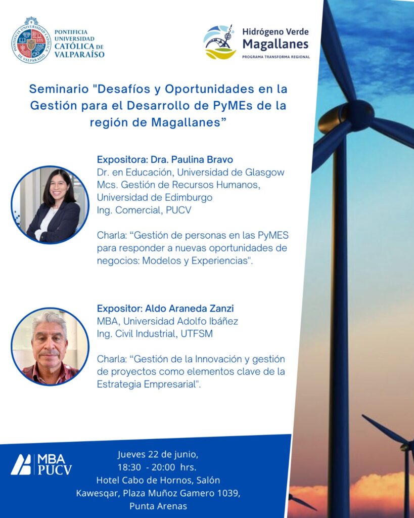 Inscríbete y participa en el Seminario «Desafíos y Oportunidades para el Desarrollo de PyMEs de Magallanes» organizado por la MBA de la PUCV y nuestro Programa Transforma de CORFO.