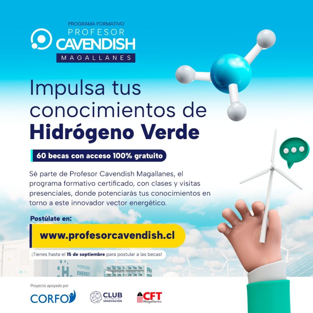 Magallánicos podrán ser parte de programa formativo de hidrógeno verde con becas gratuitas Hasta el 16 de septiembre, las y los magallánicos podrán postular para ser parte de las becas del Programa Formativo en Hidrógeno Verde “Profesor Cavendish Magallanes” www.profesorcavendish.cl, un proyecto del Club de Innovación coejecutado con el Centro de Formación Técnica Estatal de […]